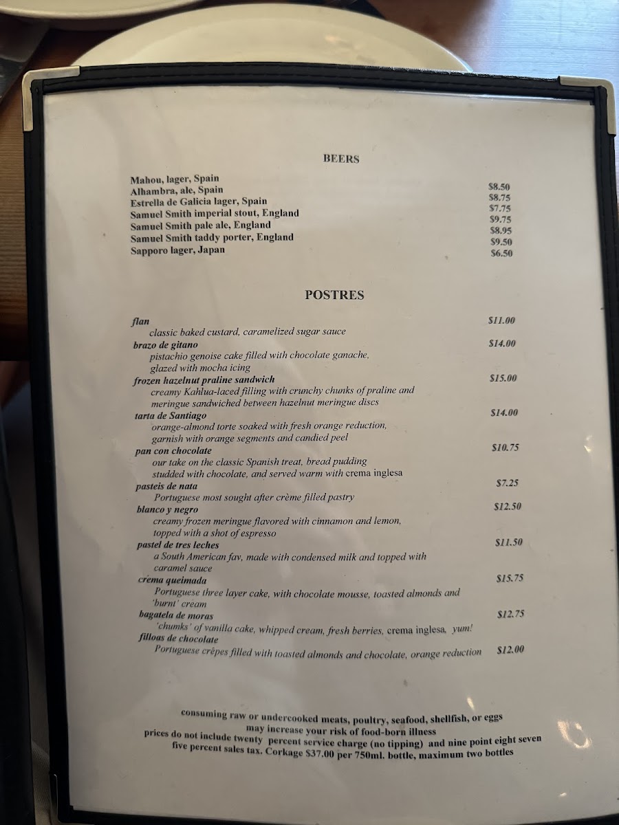 For mains, you’ll find classic seafood paella, tender meats, and a variety of vegetarian choices that highlight the rich tastes of Spain and Portugal. The seasonal ingredients bring freshness to every plate, while the vibrant spices elevate the entire dining experience. Pair your meal with a glass of sangria or a glass of Spanish wine to complete the perfect dinner.